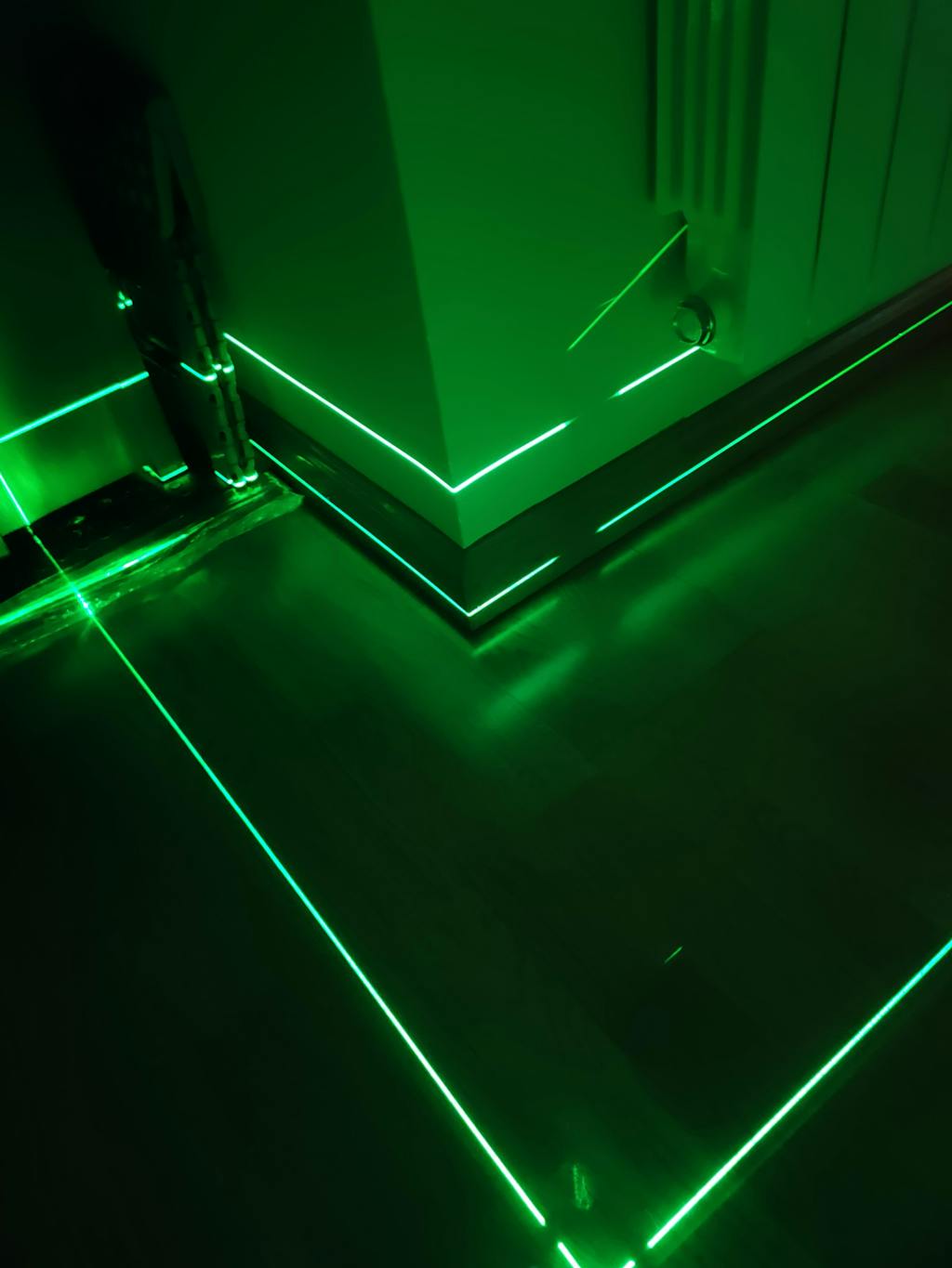 Obeservo que la proyección de las líneas láser se proyectan con discontinuidad. No son contínuas las líneas láser.